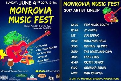 JUNE 4, 2017 - My first festival in Southern California! So grateful to the Monrovia Music Fest Team for finding me a slot at 12:45PM! Honored to be part of this talented group of musicians and the largest outdoor music festival in the San Gabriel Valley! The price is really nice too! It's FREE! Come out to the Library Park in Monrovia for a fund day of music! For more info, check out www.monroviamusicfest.com.